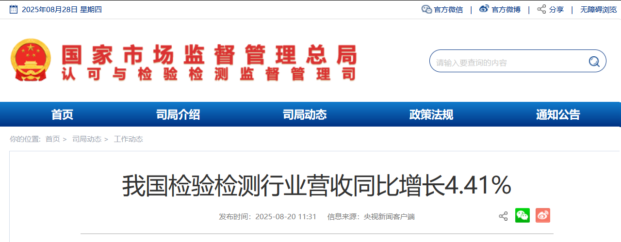 我國檢驗(yàn)檢測(cè)行業(yè)營收同比增長4.41%
